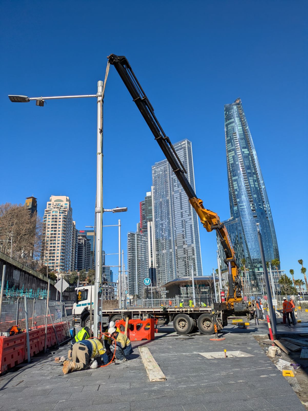 Barangaroo (Ward Civil) Light Poles 19 July 2024 Mid 2024 saw the final stages of Barangaroo get completed. Truck 05 was instrumental in delivering and installing light poles for Ward Civil at Barangaroo.