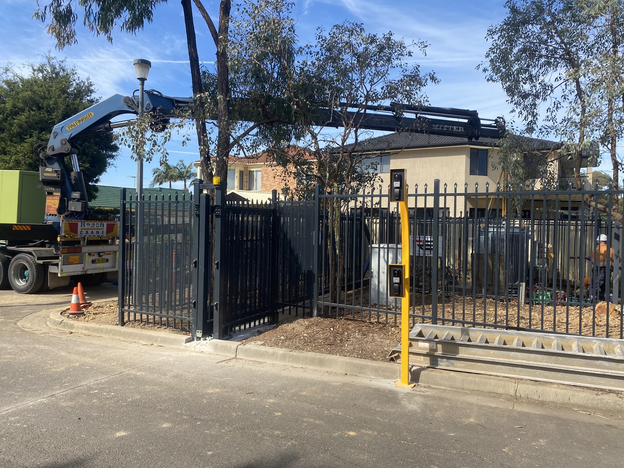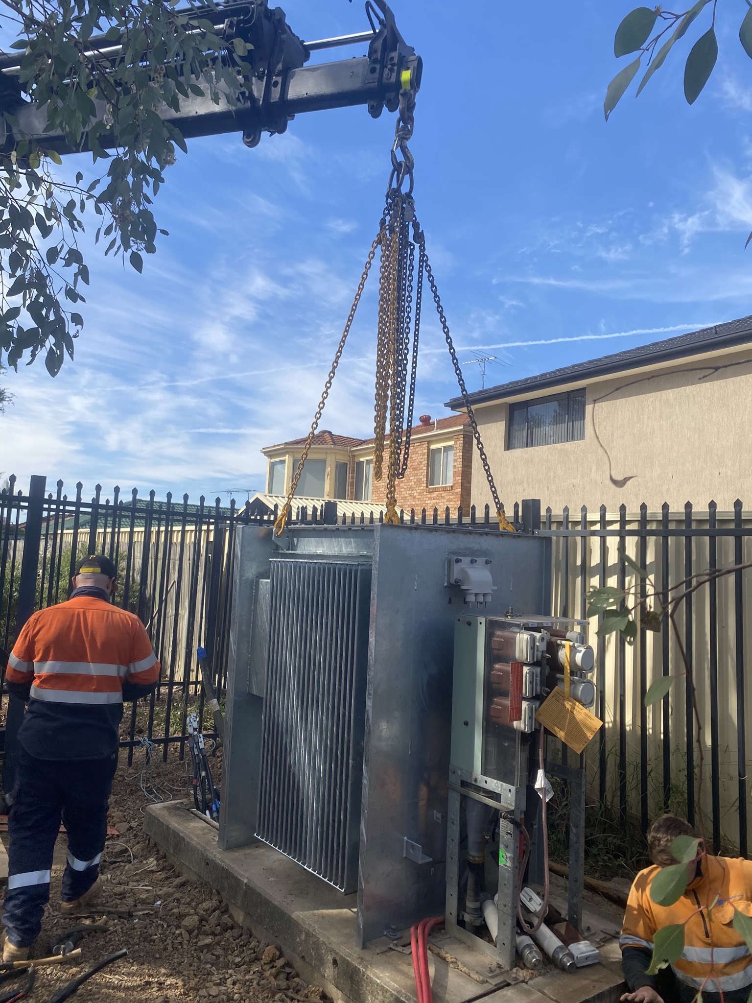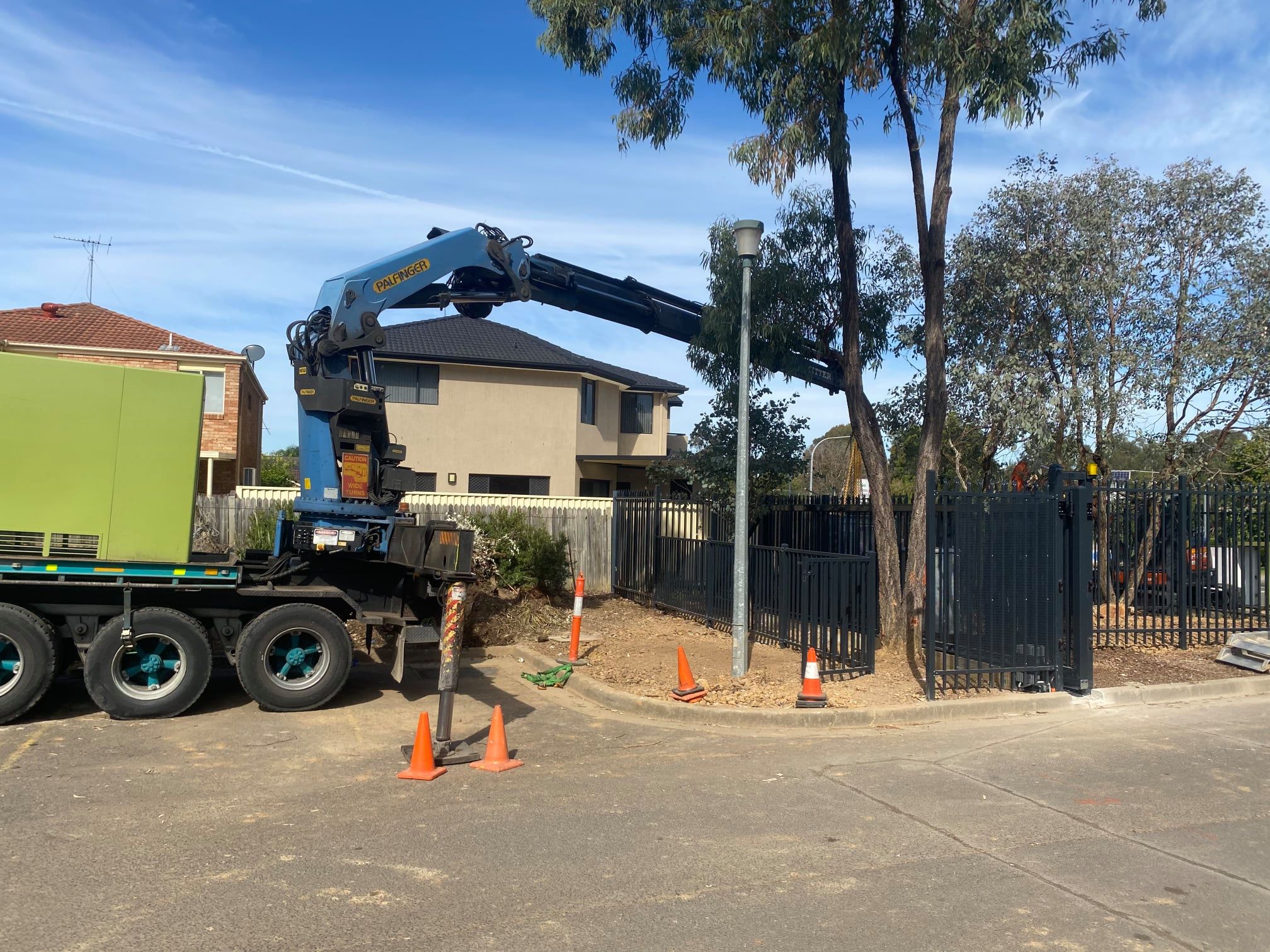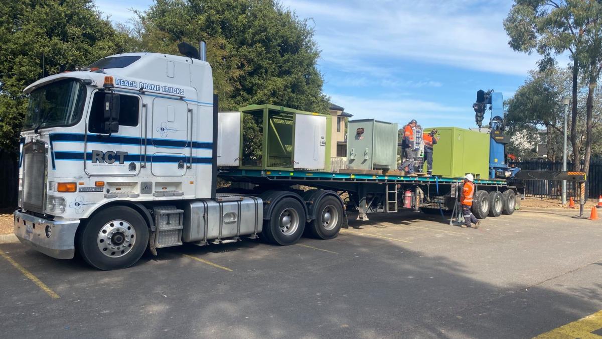 Our Palfinger 54,000K hasn't received much love lately. Here are some photos of this rear mount semi hiab flexing its muscles. First up was a 6 tonne transformer install in Cecil Hills over a weekend shut down at Cecil Hills High School. Then it was onto a loaded container relocation on site at Eastern Creek.