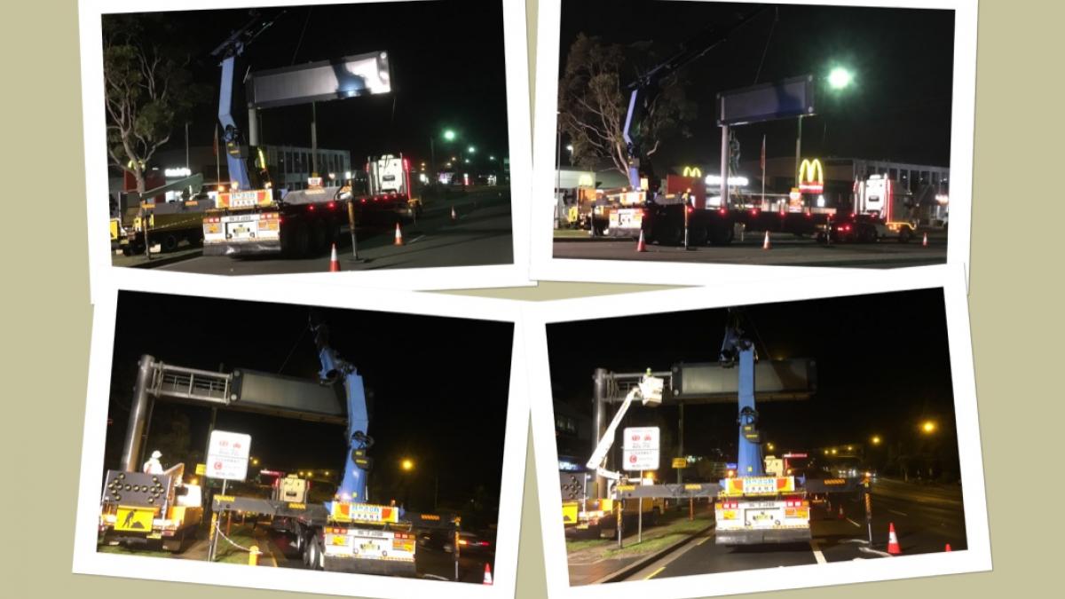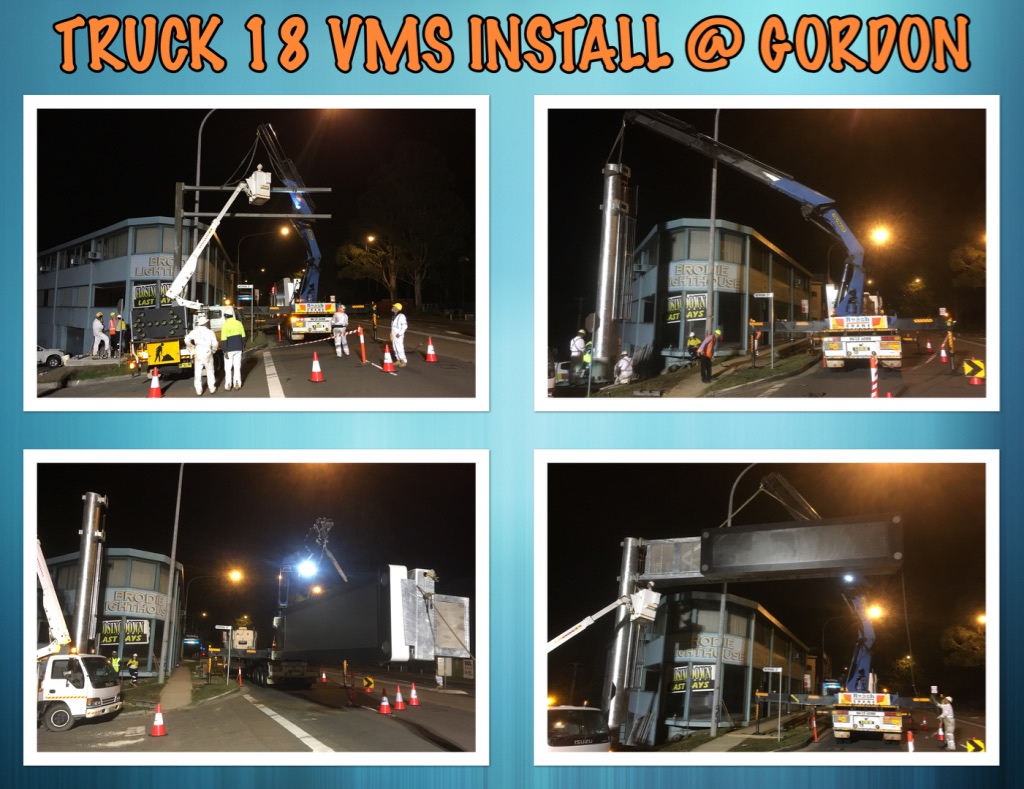 Installing VMS signs for the RMS 01 April 2019 Image VMS (Variable Messaging System), Reach Crane Trucks specialises in installing VMS signs for the RMS