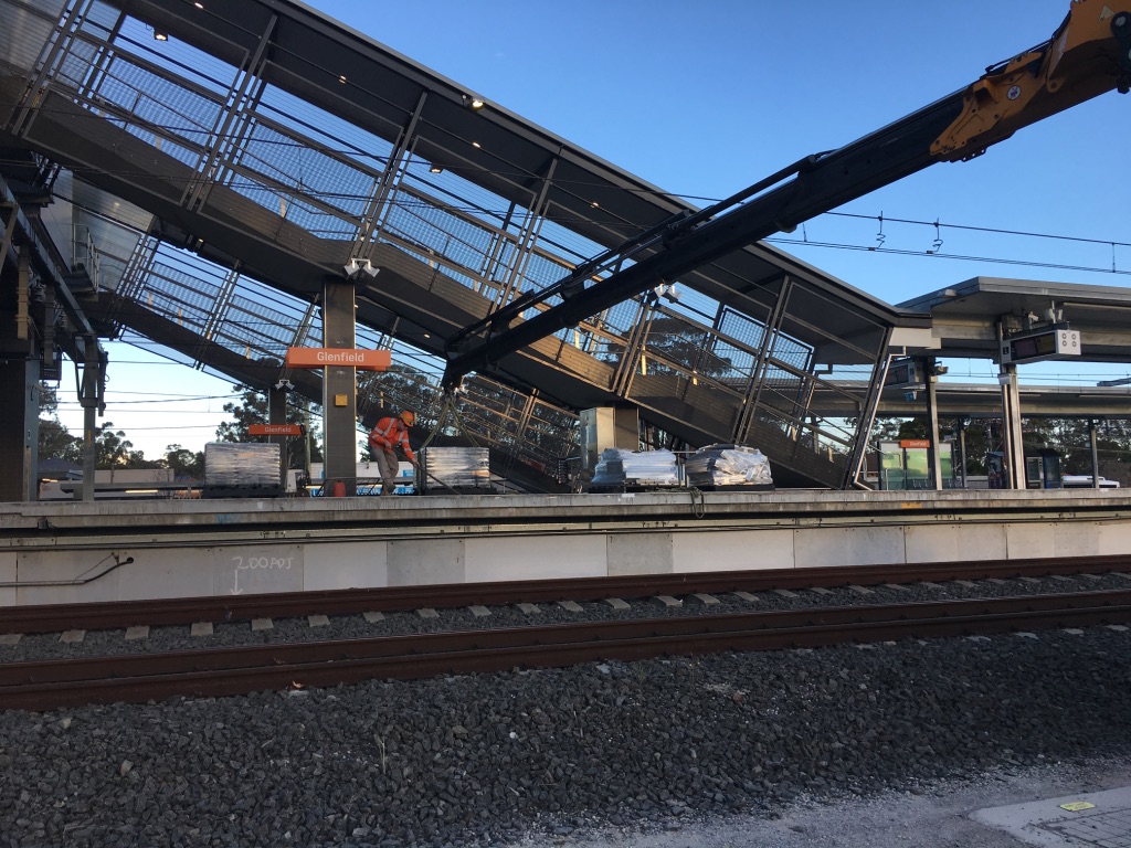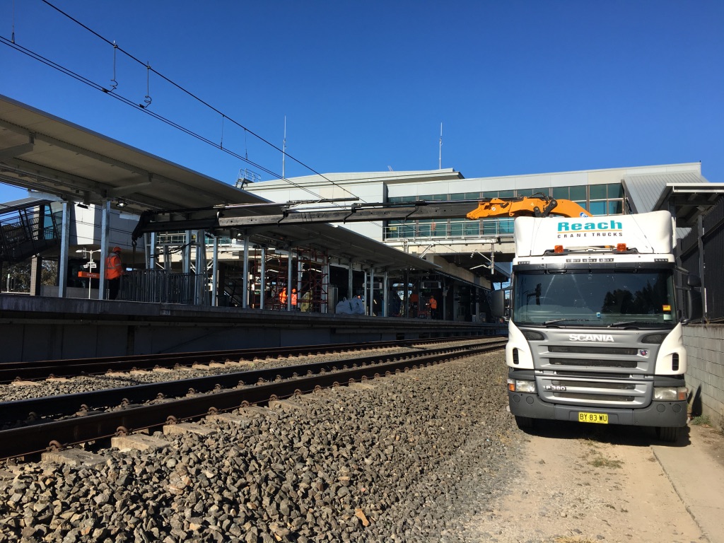 Southwest Rail Link 01 April 2017 Image Reach Crane Trucks has RIW inducted drivers. Truck 05, working at the new Glenfield Railway Station – part of the Southwest Rail Link